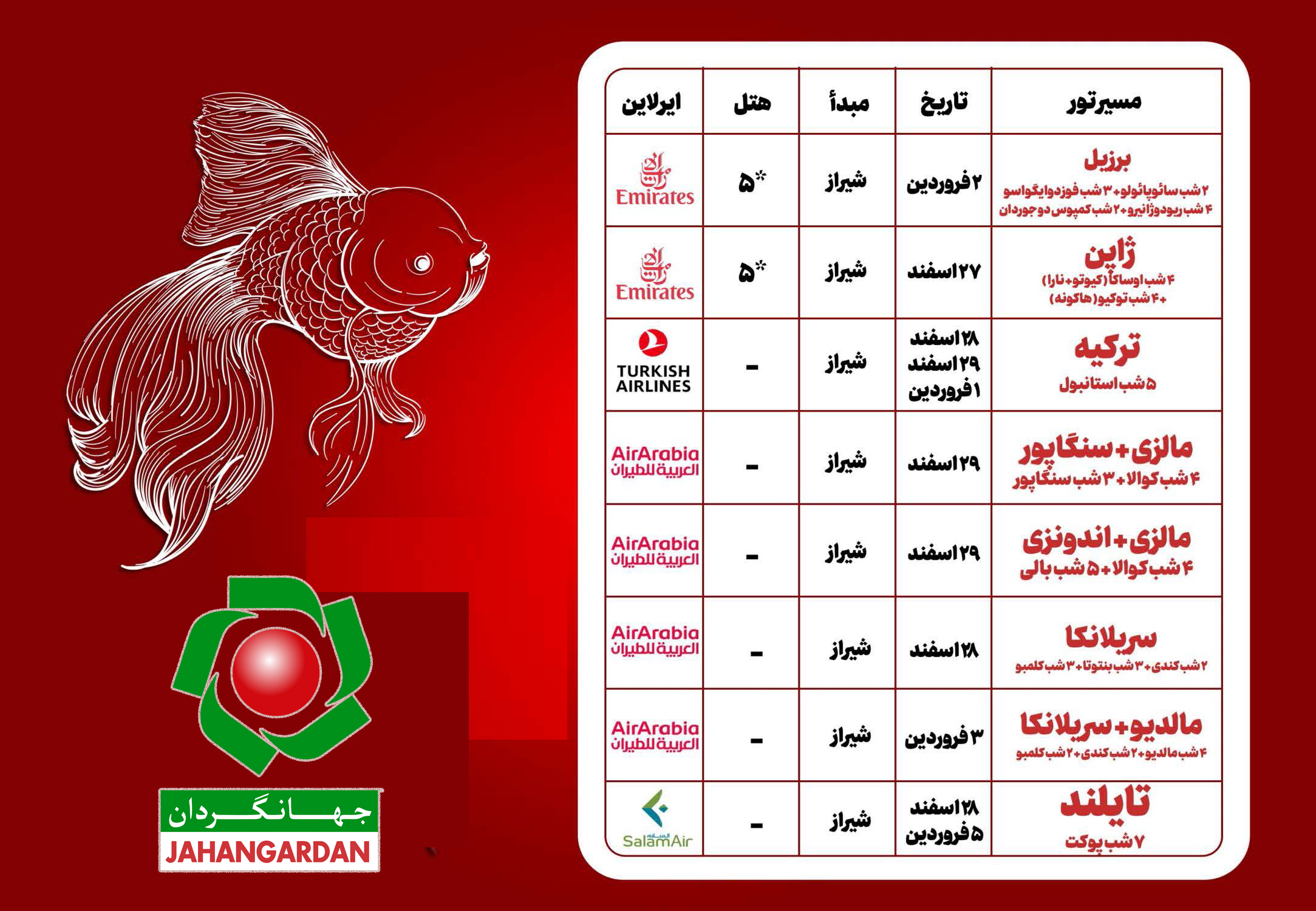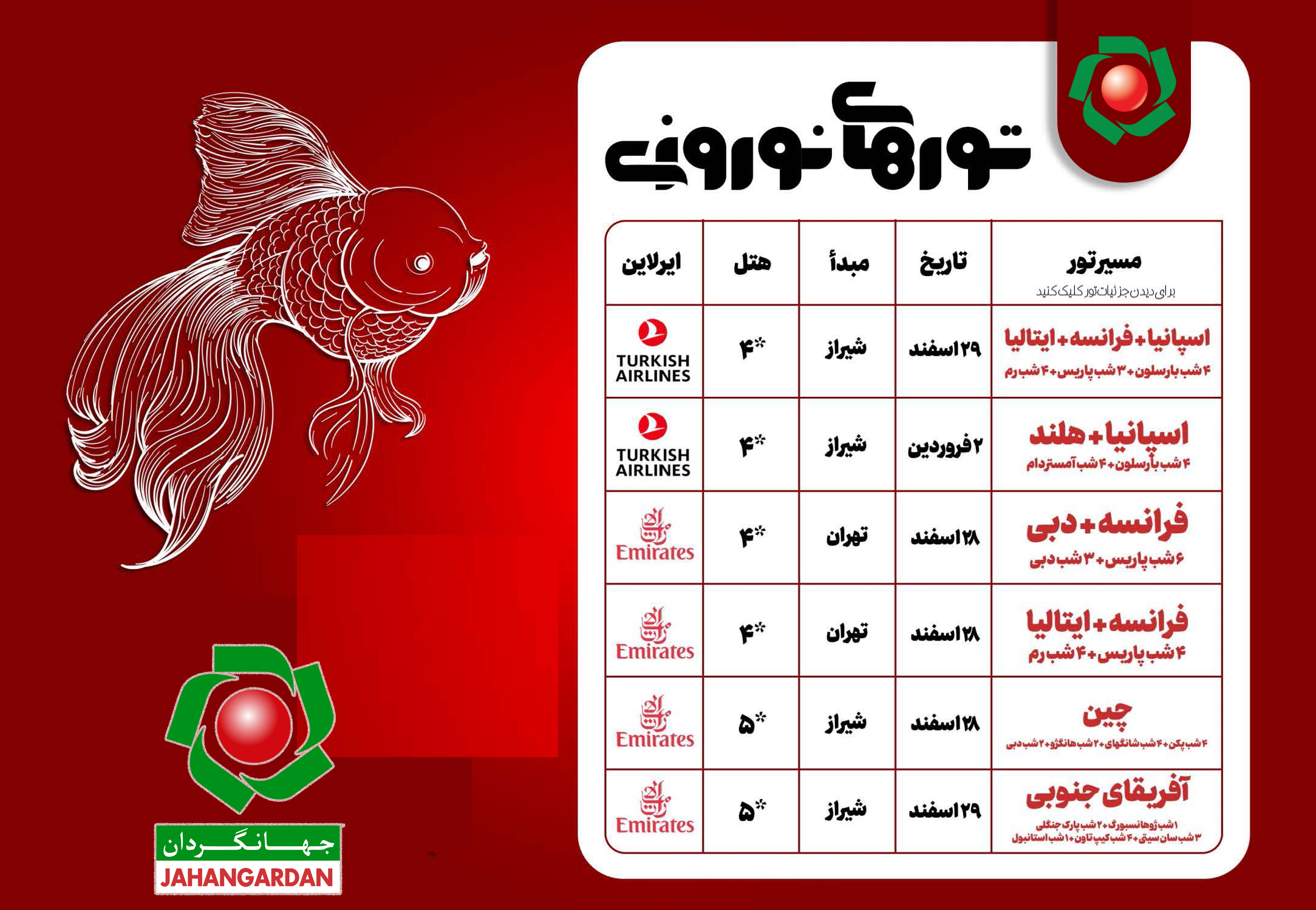 جهت دیدن جزییات تورها روی تصویر کلیک کنید